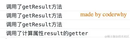 缺点一:我们事实上先显示的是一个结果,但是都变成了一种方法的调用 缺点二:多次使用方法的时候,没有缓存,也需要多次计算