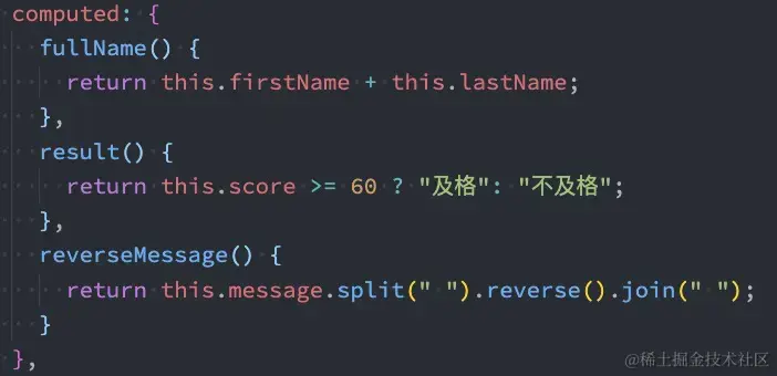 注意:计算属性看起来像是一个函数,但是我们在使用的时候不需要加(),这个后面讲setter和getter时会讲到。 我们会发现无论是直观上,还是效果上计算属性都是更好的选择,并且计算属性是有缓存的。