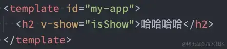 <h2>{{ isShow ? "哈哈哈": "" }}</h2>