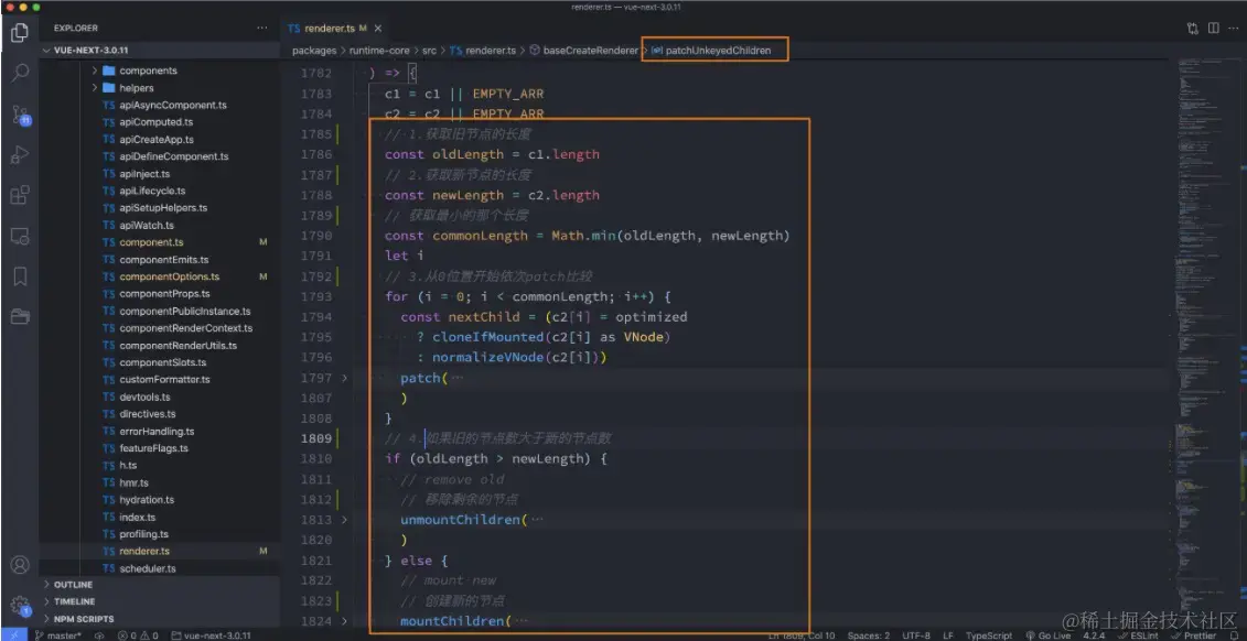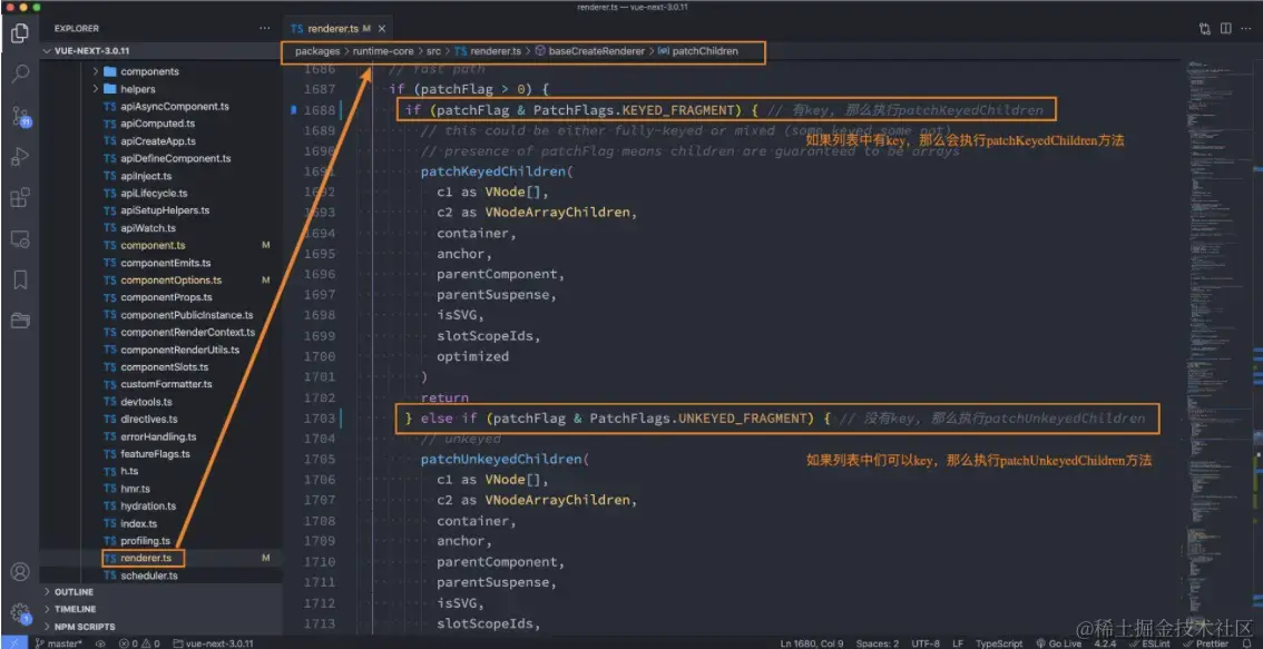 那么Vue中对于列表的更新究竟是如何操作的呢? Vue事实上会对于有key和没有key会调用两个不同的方法,有key,那么就调用 patchKeyedChildren方法,没有key,那么就调用 patchUnkeyedChildren方法。