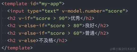 因为v-if是一个指令,所以必须将其添加到一个元素上,但是如果我们希望切换的是多个元素呢? 如果此时我们使用div包裹,div会被渲染到界面上来,但是我们并不希望div被渲染,这个时候,我们可以选择使用template,template元素可以当做不可见的包裹元素,并且 v-if 可以添加到 template 上,但是最终template不会被渲染出来,类似于小程序中的block。