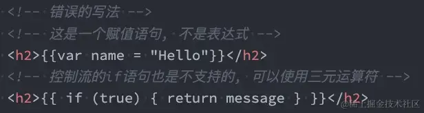 <h2 v-pre>{{message}}</h2>