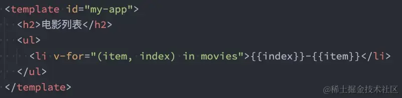 我们知道,在遍历一个数组的时候会经常需要拿到数组的索引,如果我们需要索引,可以使用格式"(item, index) in 数组",注意顺序,数组元素项item在前面,索引项index在后面。