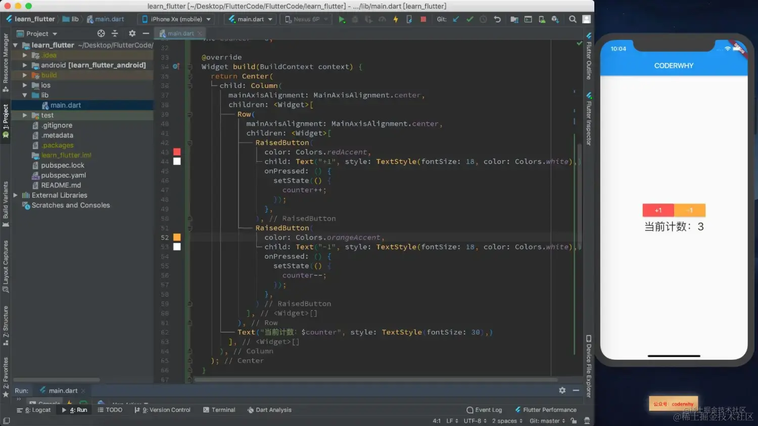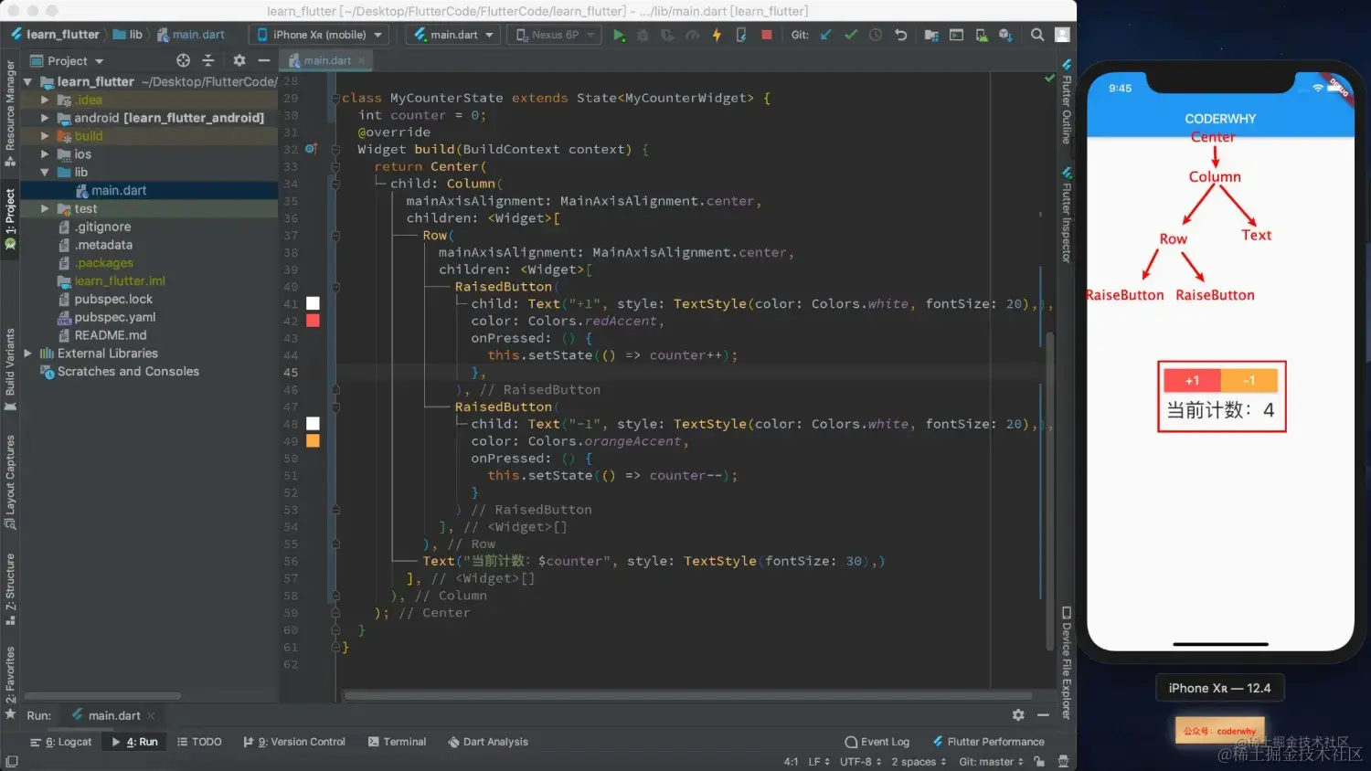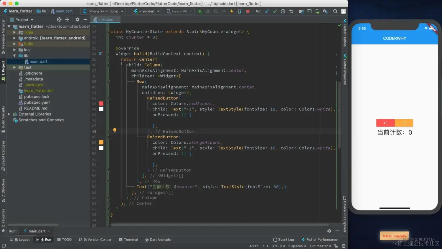 我们通过一个案例来练习一下StatefulWidget,还是之前的计数器案例,但是我们按照自己的方式进行一些改进。