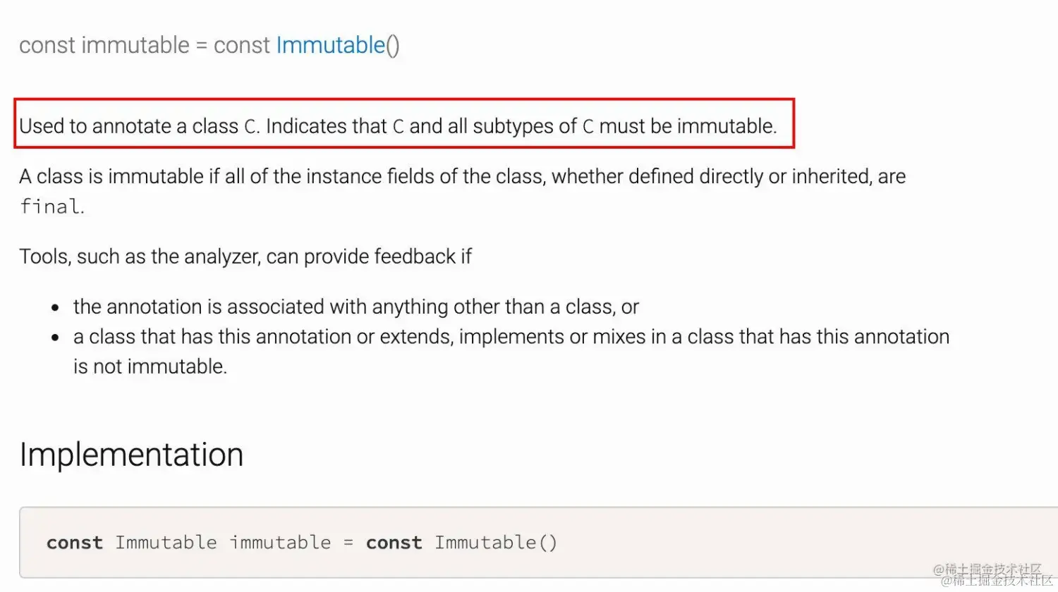 - 说明: 被@immutable注解标明的类或者子类都必须是不可变的