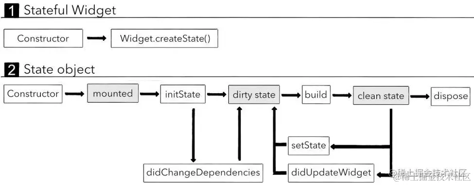 - 所以,我们主要讨论StatefulWidget的生命周期,也就是它从创建到销毁的整个过程;
