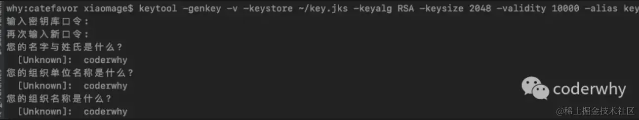 最后生成的秘钥库文件 在~/key.jks路径下。