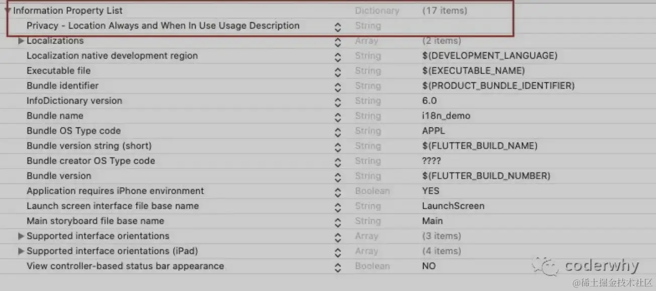 在iOS中某些权限,需要用户允许,为了添加这些权限需要配置info.plist文件: