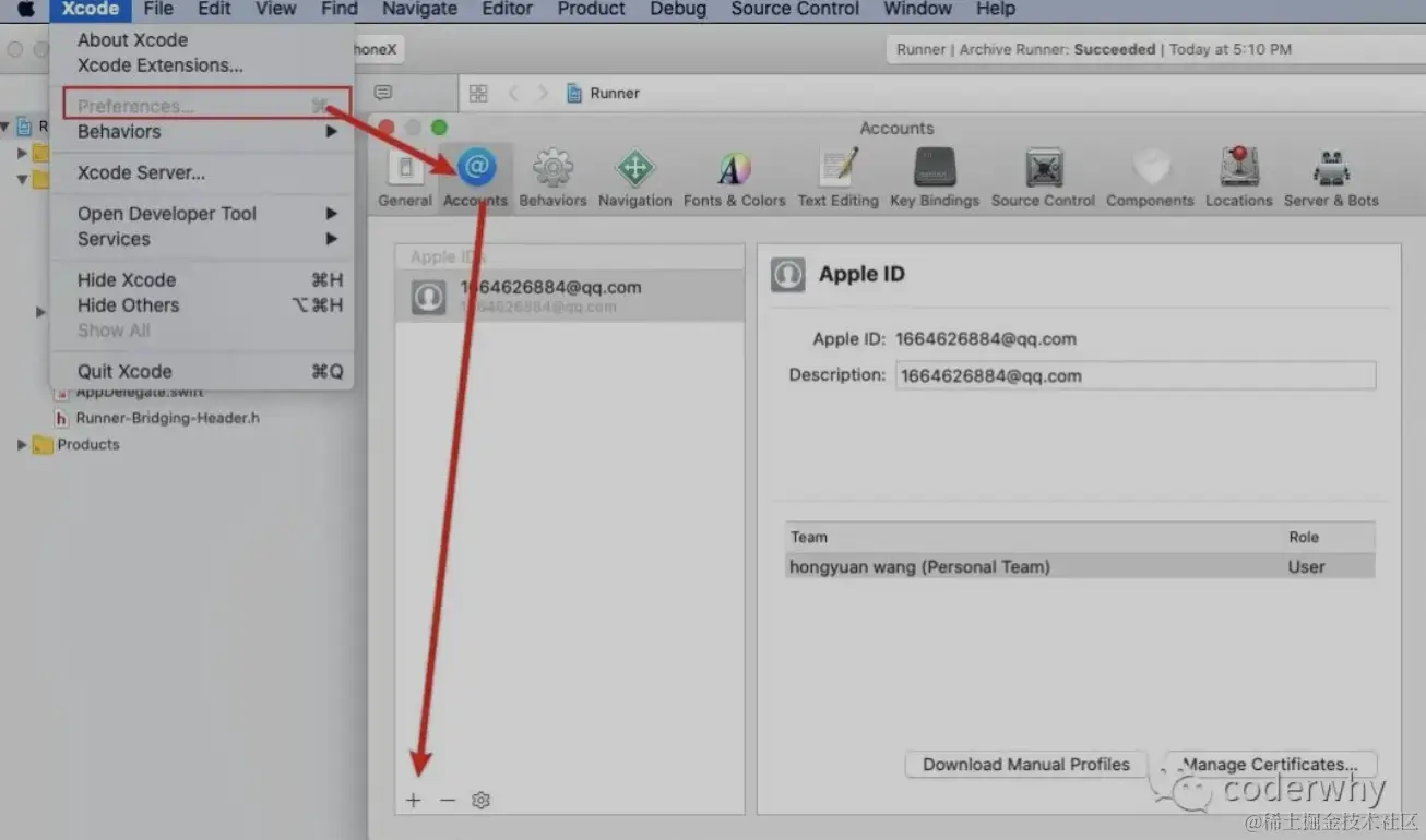 在Xcode中登录自己的AppleID。