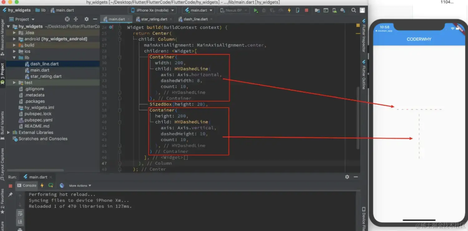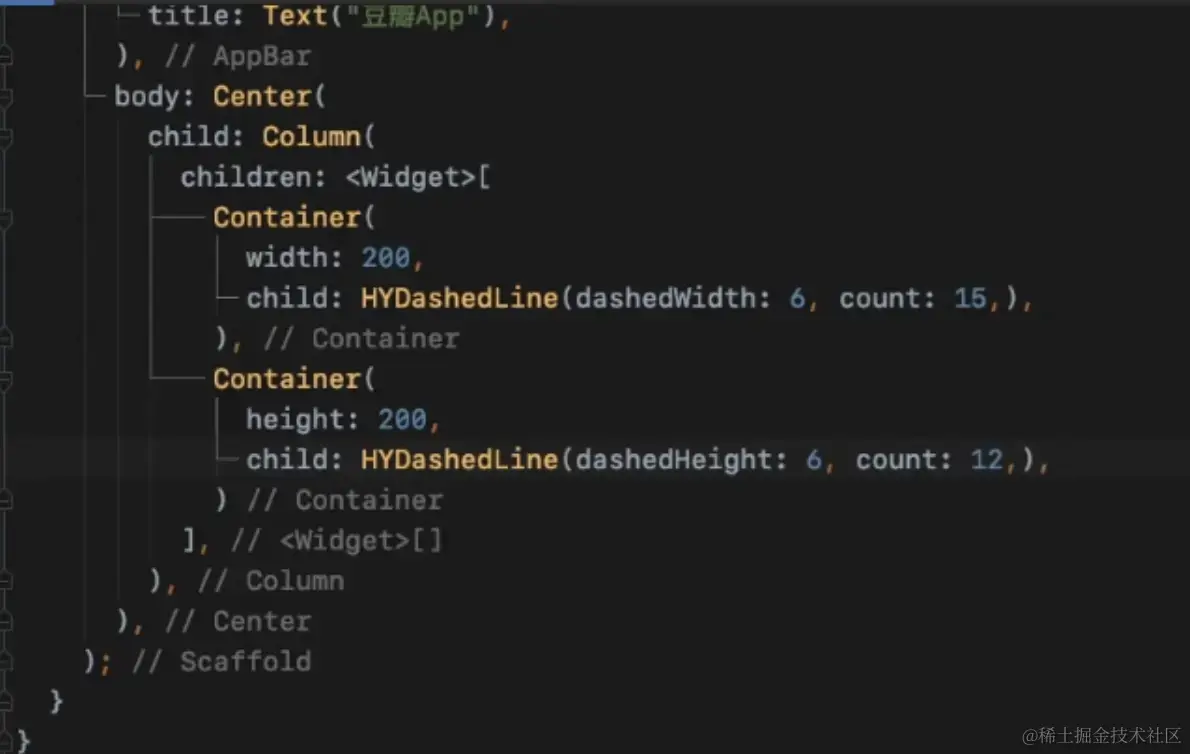 边框虚线来完成分割线,后来发现Flutter并不支持虚线边框,因此封装了一个DashedLine的小Widget来实现。