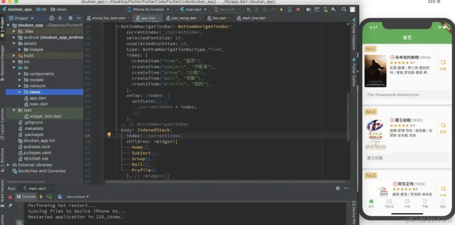 这个练习小项目主要是为了锻炼布局Widget,但是也涉及到一些其他知识点:评分展示、分割线、bottomNavigationBar等。