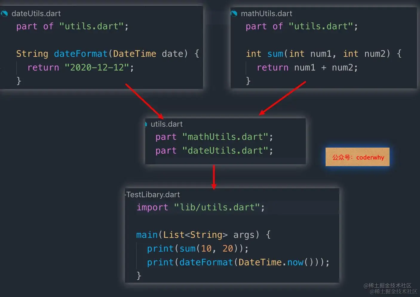 在开发中,如果一个库文件太大,将所有内容保存到一个文件夹是不太合理的,我们有可能希望将这个库进行拆分,这个时候就可以使用part关键字了