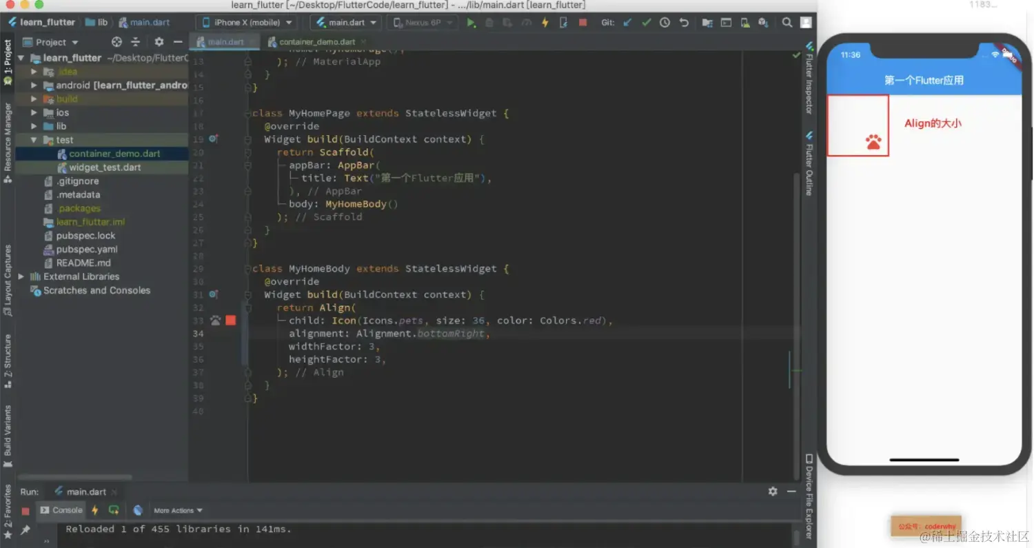 Align这个词,我们就知道它有我们的对齐方式有关。在其他端的开发中(iOS、Android、前端)Align通常只是一个属性而已,但是Flutter中Align也是一个组件。