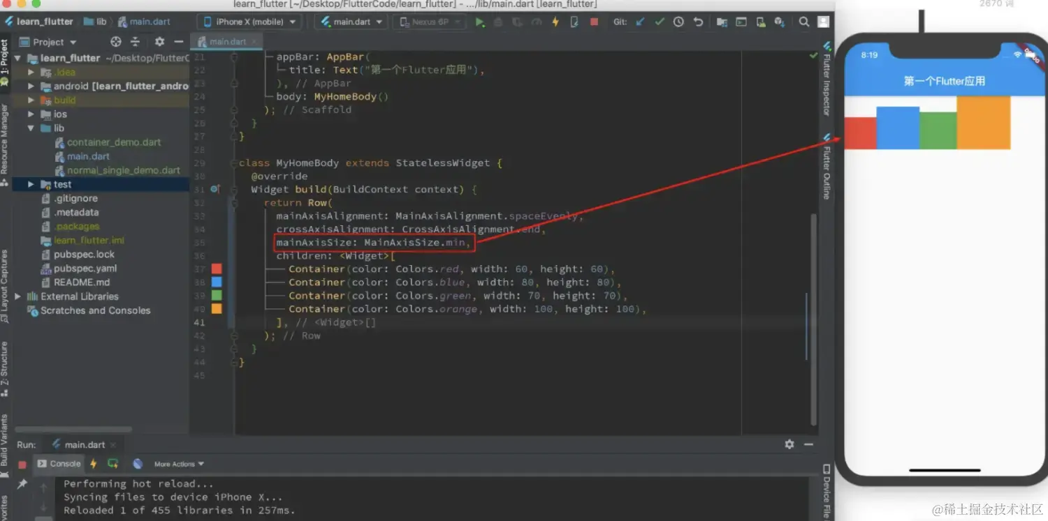 我们来看一下,如果这个值被修改为MainAxisSize.min会什么变化:
