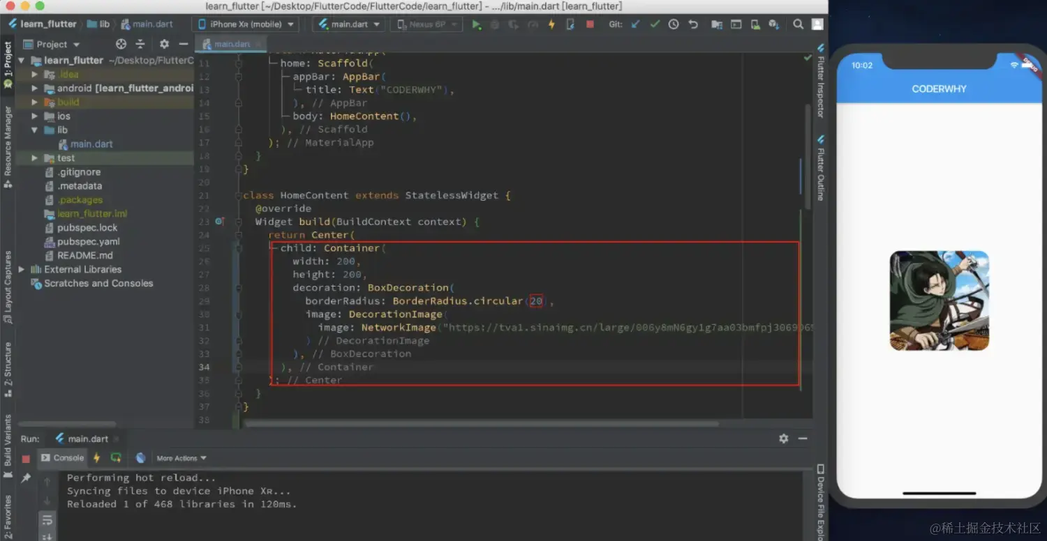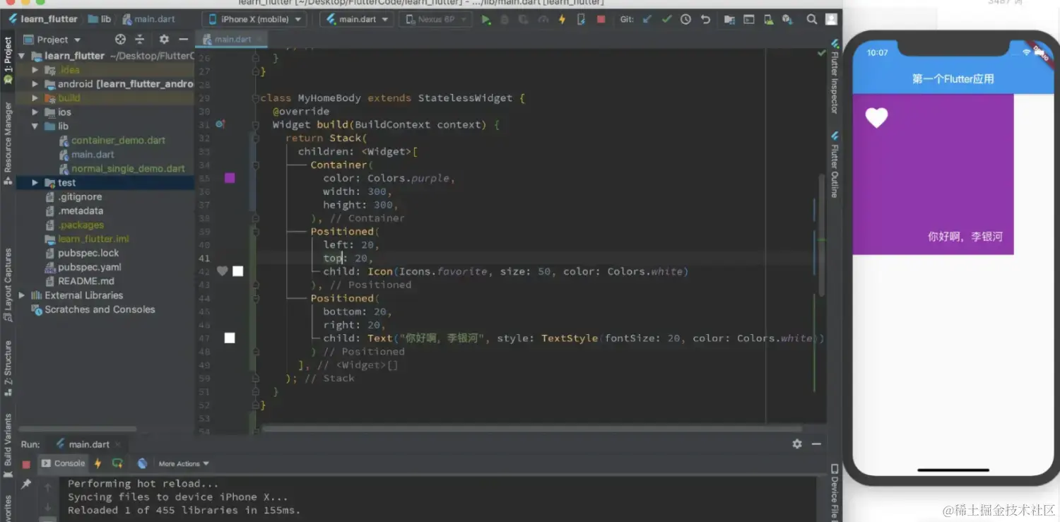 width、height属性来指定,也可以通过constraints来指定,如果同时存在时,width、height优先。实际上Container内部会根据width、height来生成一个constraints; color和decoration是互斥的,实际上,当指定color时,Container内会自动创建一个decoration;decoration属性稍后我们详细学习;