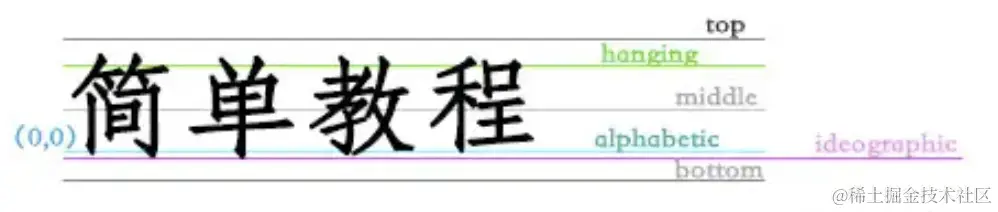 - textBaseline:文字的基线,两种基线的差异不大,很少使用。