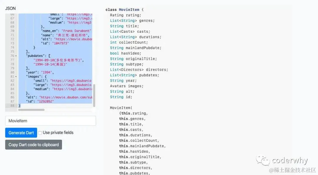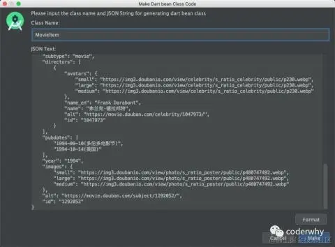 在Flutter中,有几种JSON转模型的方式,我们还是以豆瓣为例,来进行一个演练。
