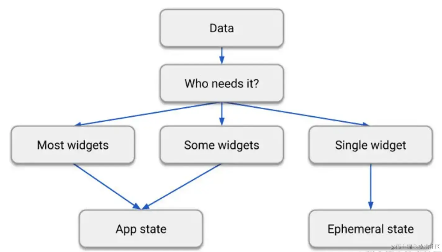 这种状态我们只需要使用StatefulWidget对应的State类自己管理即可,Widget树中的其它部分并不需要访问这个状态。