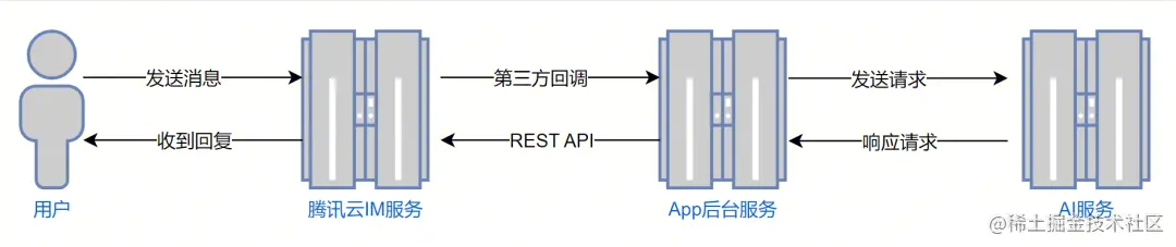 那即时通信IM该如何接入AI服务呢?本文将拆解接入AI服务的各个步骤,为您详细介绍如何通过腾讯云即时通信IM第三方回调功能,将AI服务能力引入到IM应用中,创建一个可以智能聊天的AI机器人,为用户提供真人般对话体验,实现智能客服、创意辅助、工作助手等功能。(文中的实践步骤以接入MiniMax中文大语言模型为例,类ChatGPT服务均可通过文中介绍的方法实现接入)