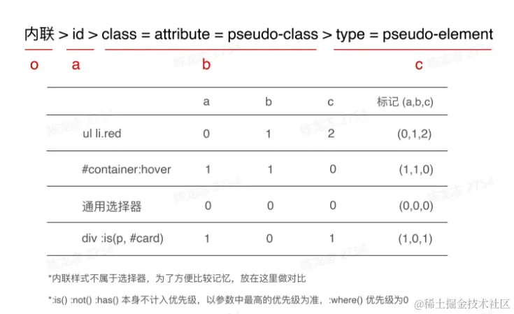 - 选择器优先级: