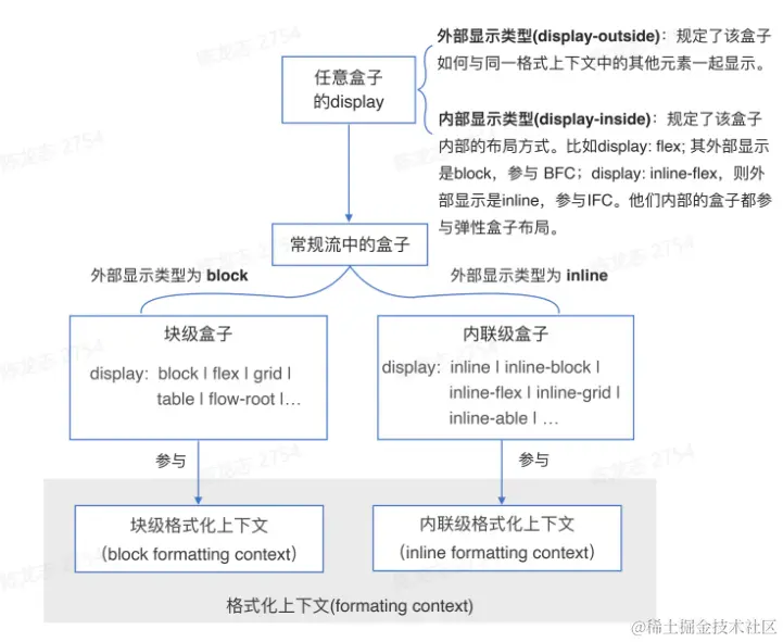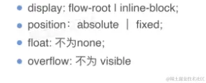 - 是一种格式规范,不管它外部显示类型是什么,但是它的内部显示类型是flow-root,其实就是这个盒子内部形成了一个新的块级格式化上下文