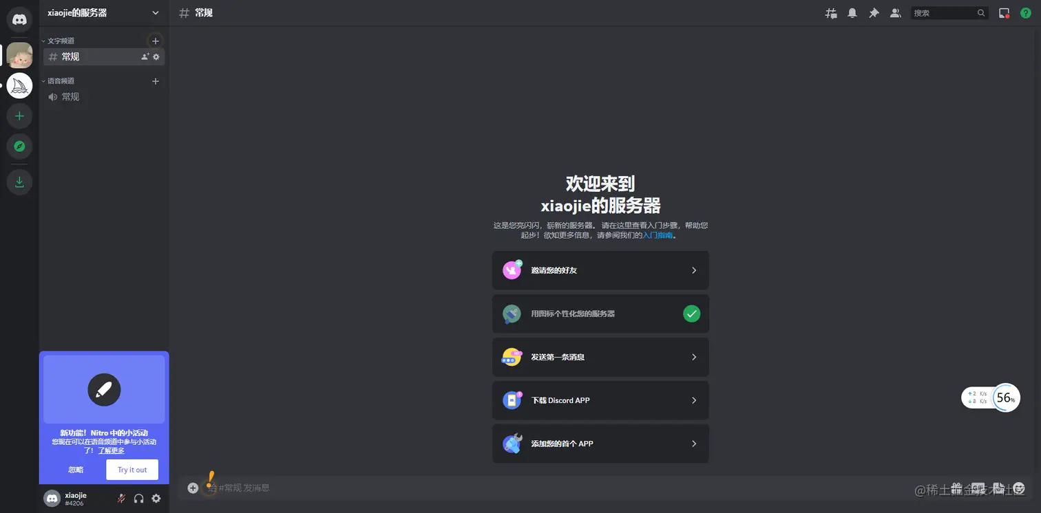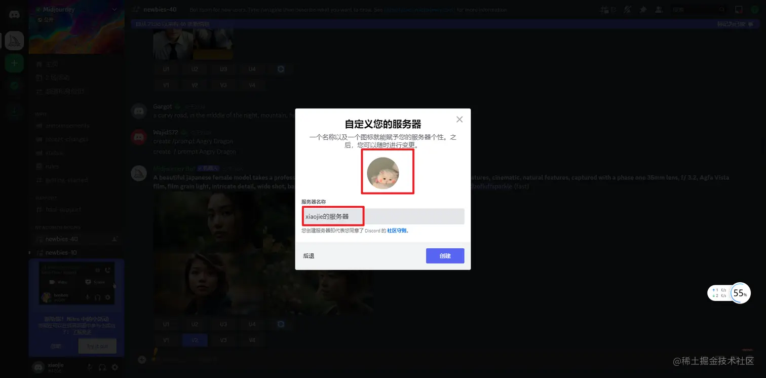 可以上传一个图片,填写自己想要的服务器名字;然后点击“创建”
