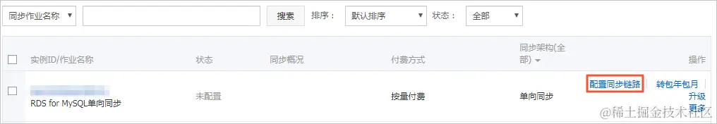 定位至已购买的数据同步实例,单击该实例的配置同步链路