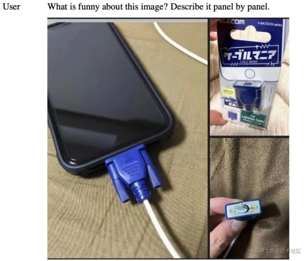 再比如给GPT-4一张长相奇怪的充电器图片,问为什么这很可笑?