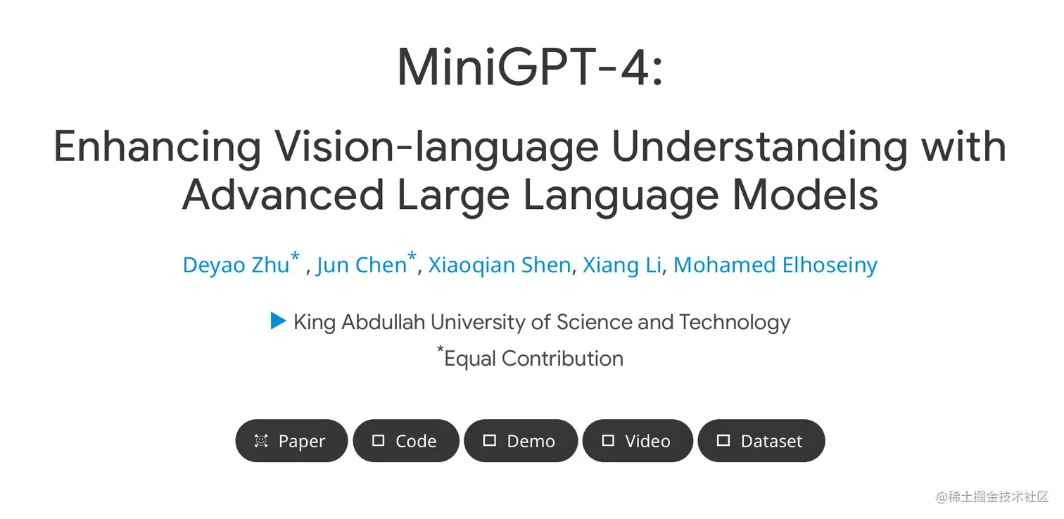MiniGPT-4背后团队来自KAUST(沙特阿卜杜拉国王科技大学),是几位博士开发的。