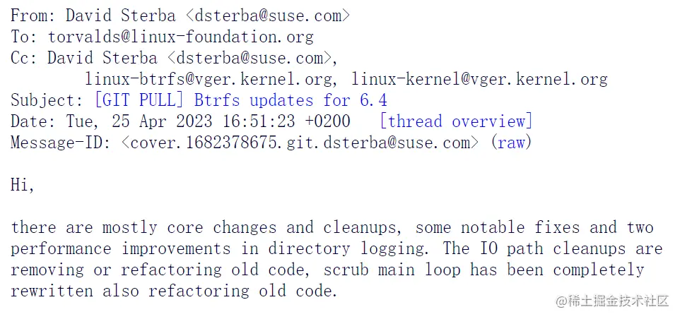 可通过此 PR 查看 Linux 6.4 合并窗口的 Btrfs 补丁完整列表。