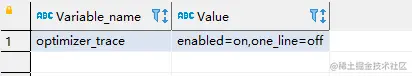 optimizer_trace的开关默认是关闭的,我们可以使用下行代码查看optimizer_trace状态。