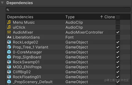 - Dependencies:列出模板场景的依赖项,并指定 Unity 在从模板创建新场景时是否克隆它们。