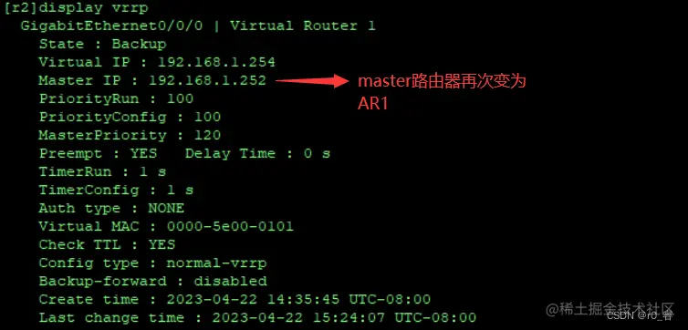 修复好AR1时,Master路由器会再次换成AR1