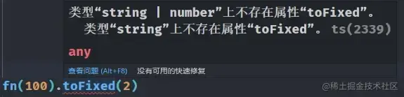 ts 就会认为, 你有可能是一个 string 类型, 那么 string 类型是没有 toFixed 这个方法的, 所以就会提示错误