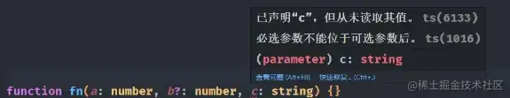 function fn(a: string, b: string, c: number): void {