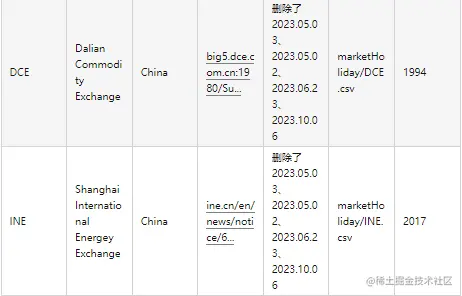 本章节余下部分将介绍如何通过上述两个函数自定义及更新内置交易日历。