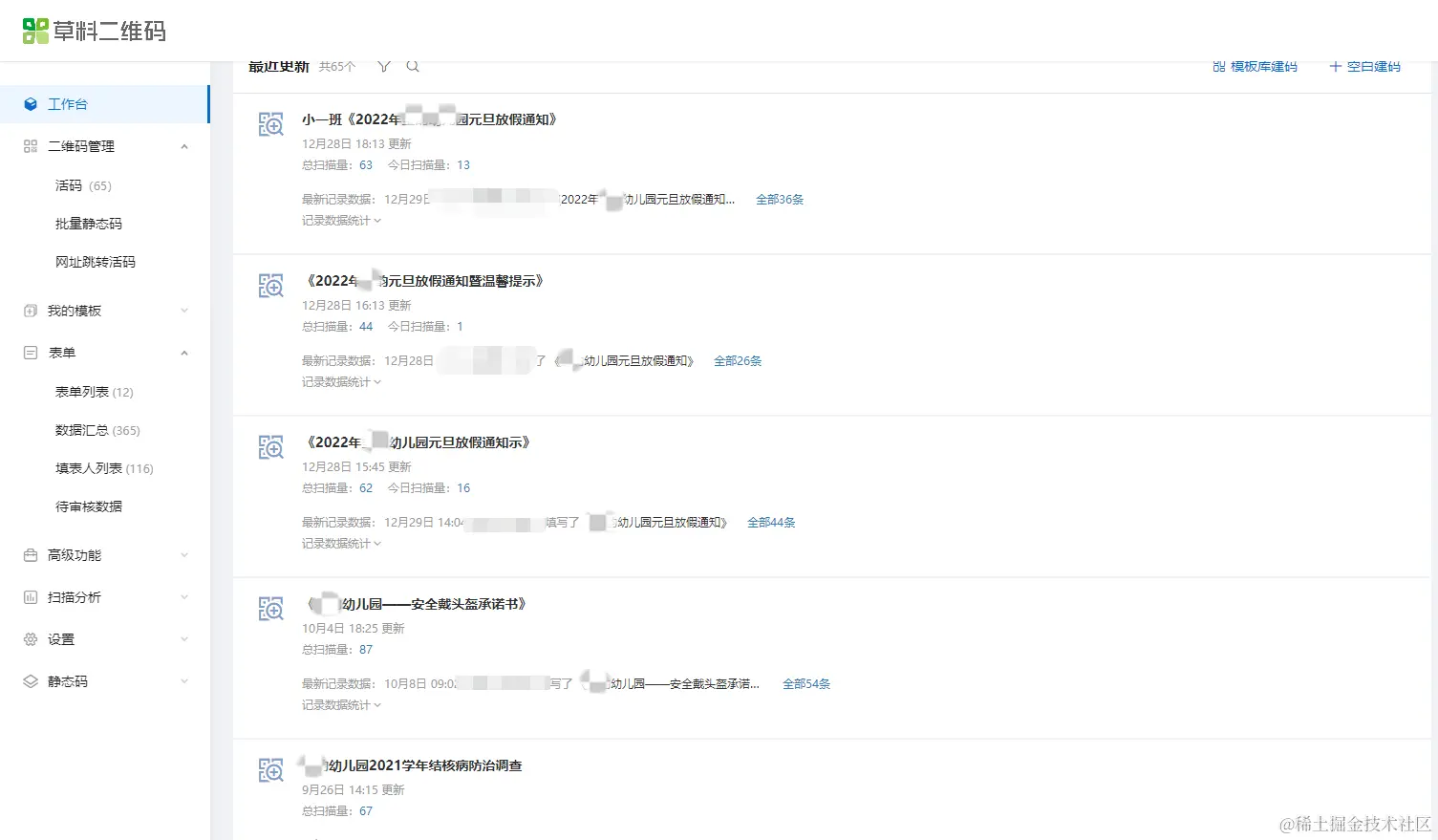 当家长们都扫码填写完毕后,老师可以登陆草料二维码后台一键导出所有数据,并进行复印整理。