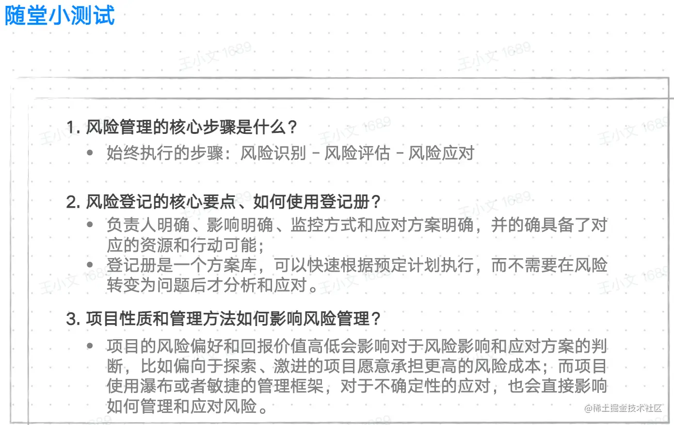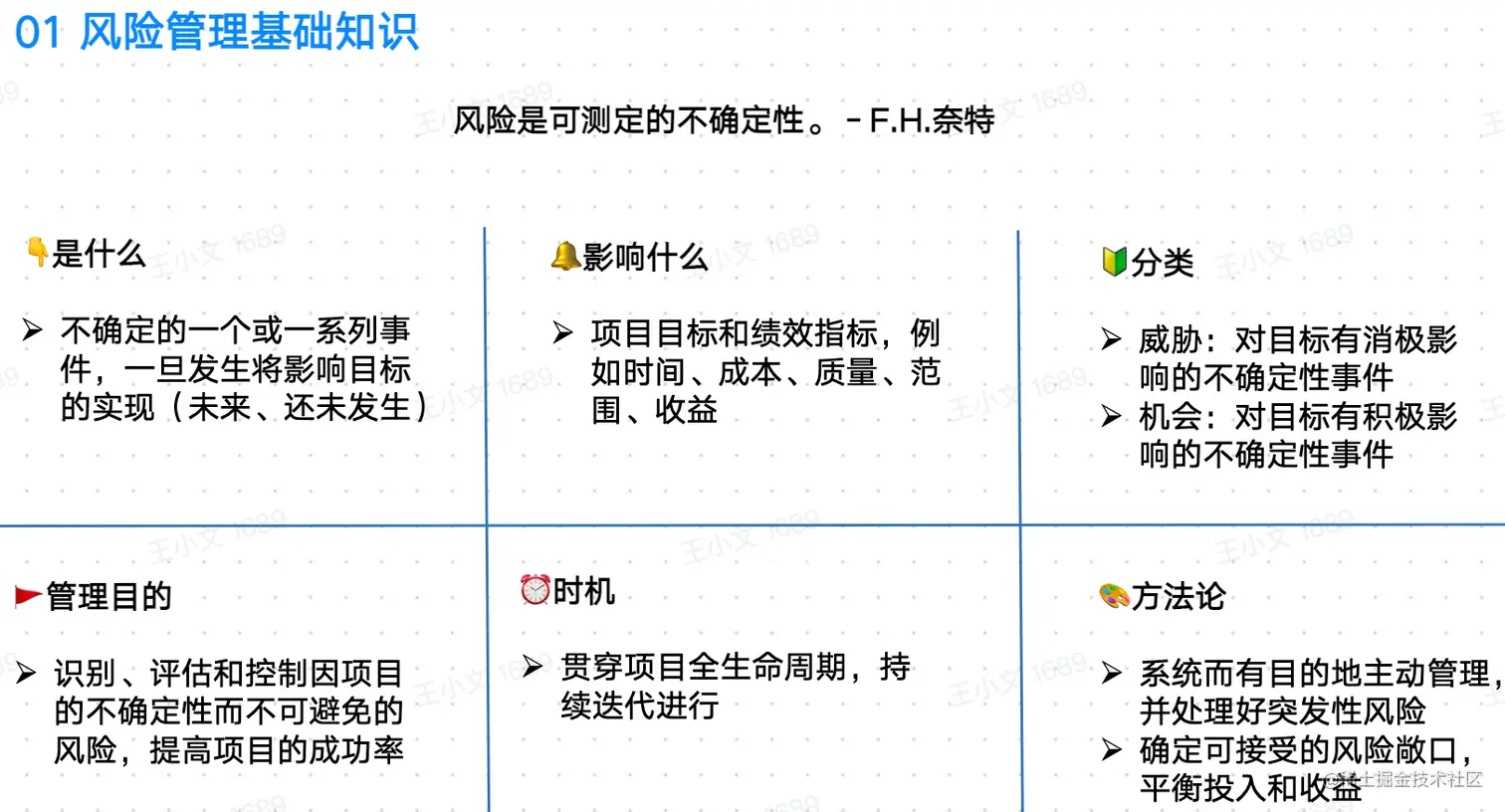 在敏捷Scrum项目中我们提倡拥抱变化,实际推进项目的过程中存在很多不确定性,而不确定性往往与风险相关,所以拥抱变化也同时意味着增加风险管理的能力。