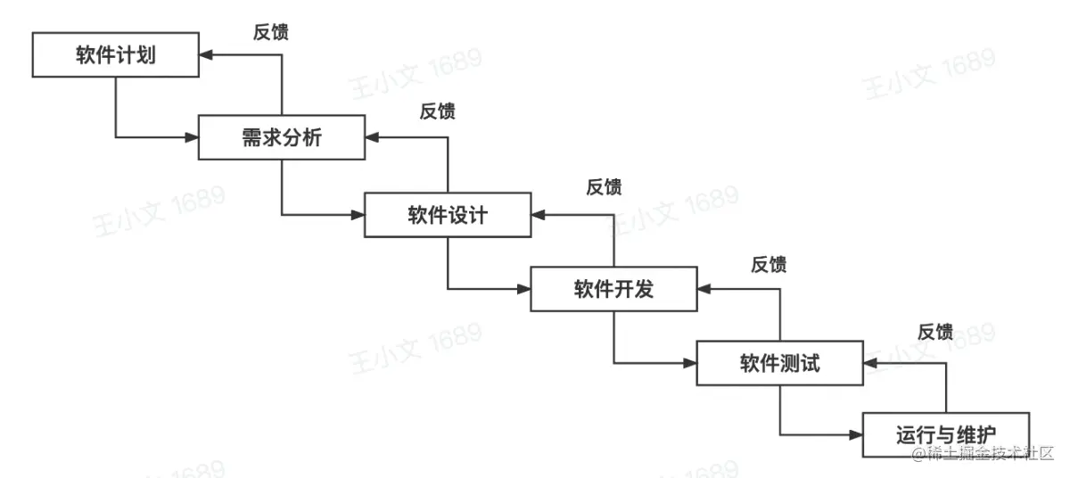 定义:1970年温斯顿·罗伊斯(Winston Royce)提出了著名的“瀑布模型”,直到80年代早期,它一直是唯一被广泛采用的软件开发模型,瀑布模型将软件生存周期的各项活动规定为按固定顺序而连接的若干阶段工作,形如瀑布流水,最终得到软件产品。