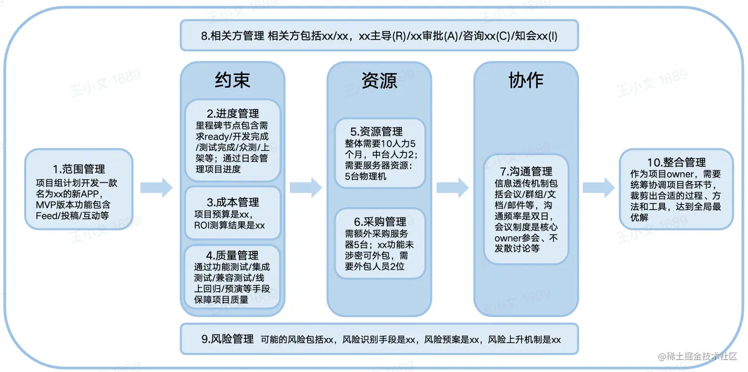 2.协作、计划混乱,如:一个项目参与的多方各自都有一套计划or标准,但执行中