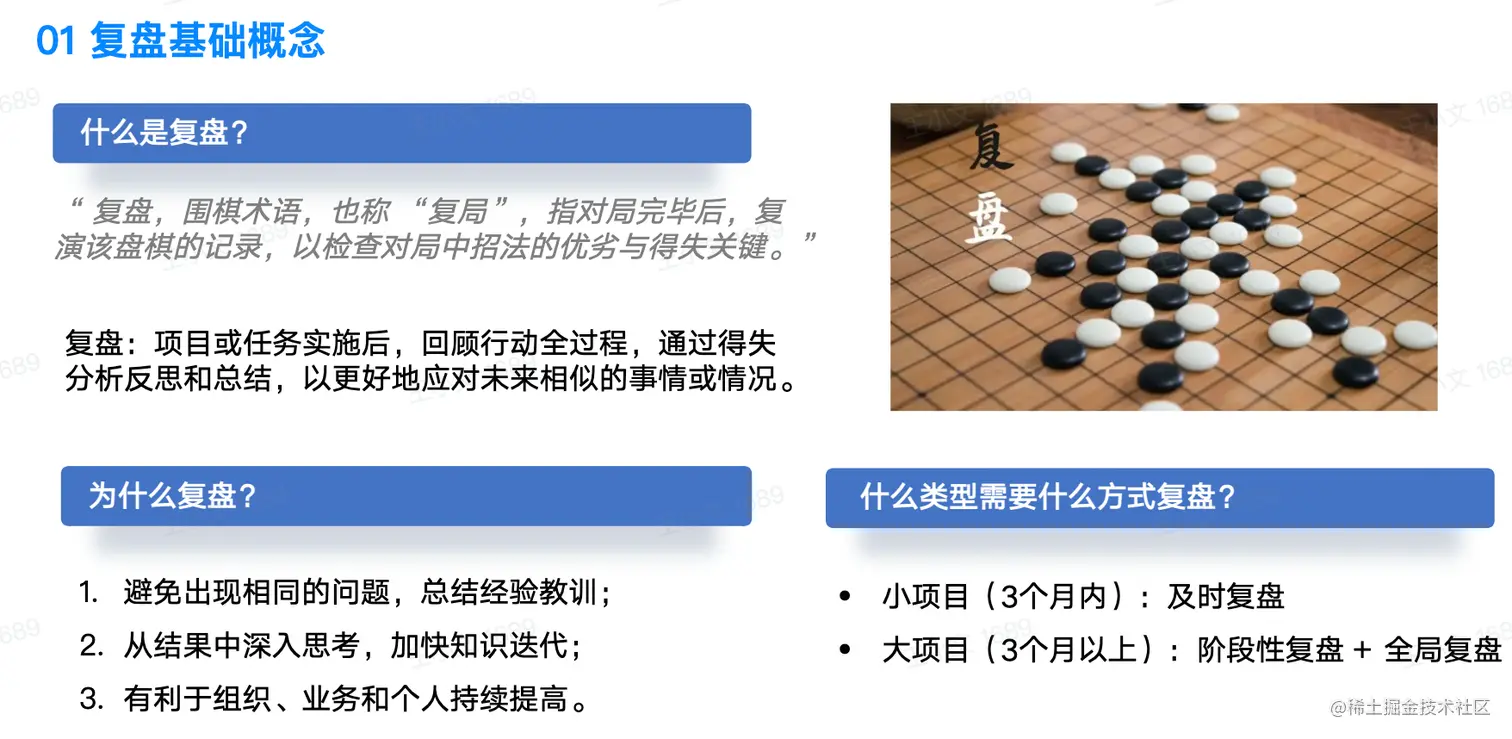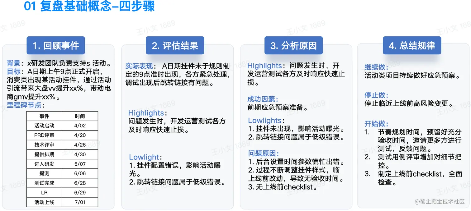·大项目(3个月以上):阶段性复盘+全局复盘