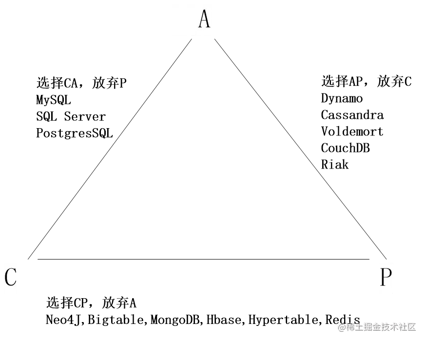 1.CA:也就是强调一致性(C)和可用性(A),放弃分区容忍性(P),最简单的做法是把所有与事务相关的内容都放到同一台机器上。很显然,这种做法会严重影响系统的可扩展性。传统的关系数据库(MySQL、SQL Server和PostgreSQL),都采用了这种设计原则,因此,扩展性都比较差