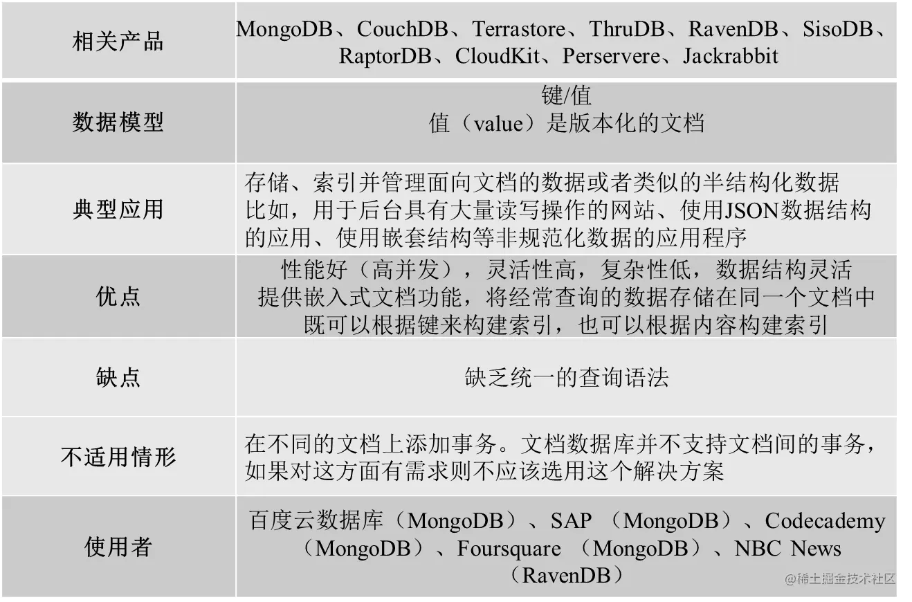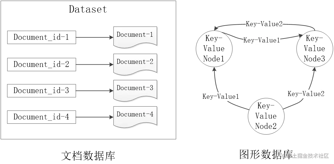 “文档”其实是一个数据记录,这个记录能够对包含的数据类型和内容进行“自我描述”。XML文档、HTML文档和JSON 文档就属于这一类。