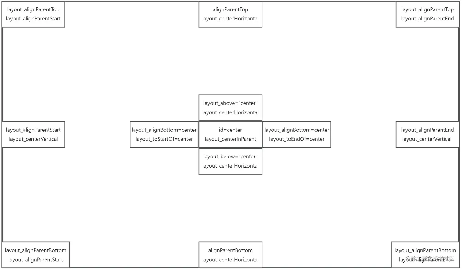 | android:layout_toEndOf="@id/xxx" | 将控件的左边缘和给定 ID 控件的右边缘对齐(贴合居右) |