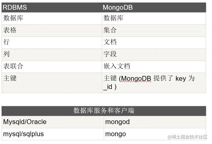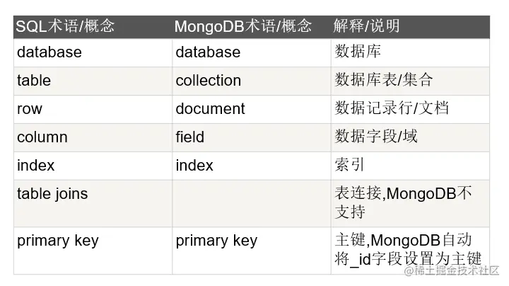 Mongo与RDBMS的术语对比