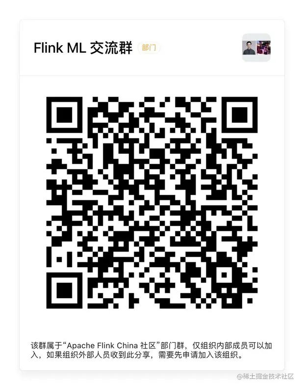 扫码加入交流群,欢迎讨论 Flink ML 相关的任何问题~