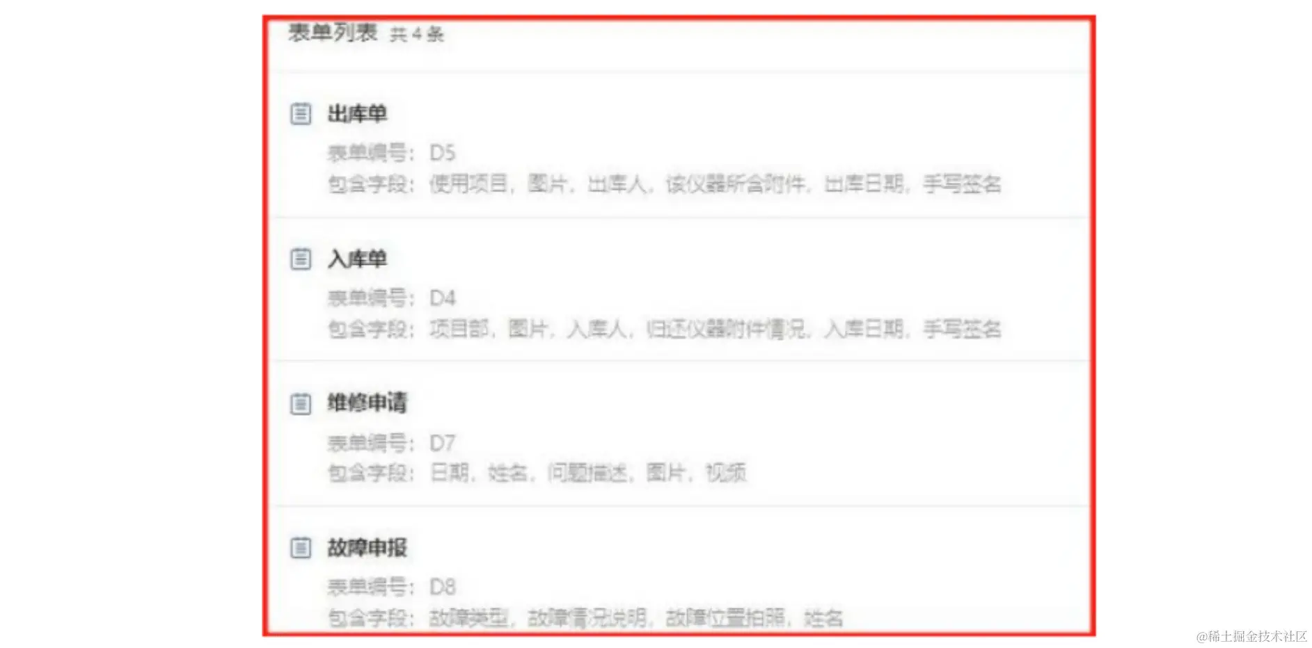 关联“出入库表单”、“维修申请单”以及“故障申报单”,由使用者扫码进行填写。