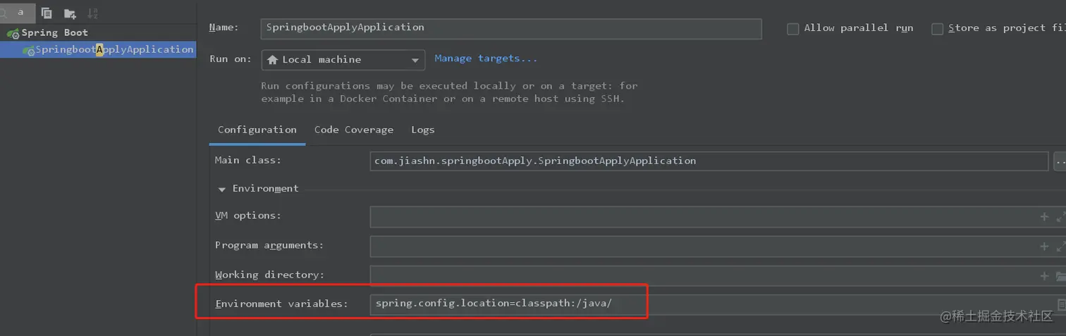 编辑启动项,在【Environment variables】中添加【spring.config.location=classpath:/】或【spring.config.additional-location=classpath:/ 】或【spring.config.name=java】,在【resources】下创建目录并添加配置文件。