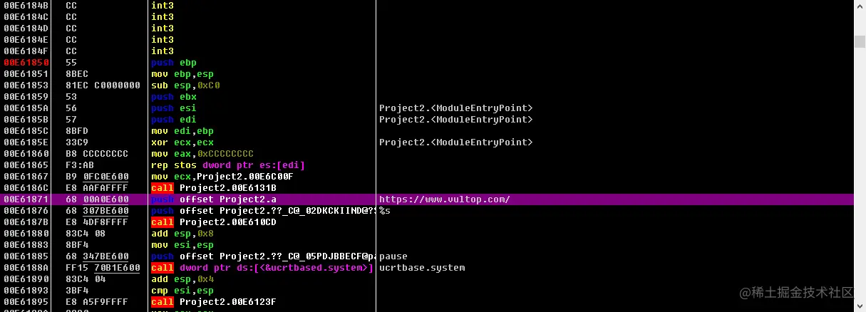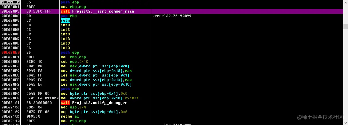 随后我们在这里F2下断点,然后F9就可以到我们的主函数这里: