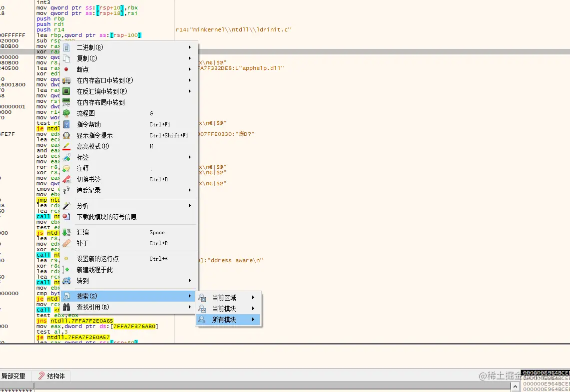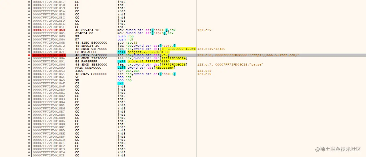 int 3断点:F2键或者双击要下断点的代码的硬编码地方,当前代码会被暂时修改为int 3断点;